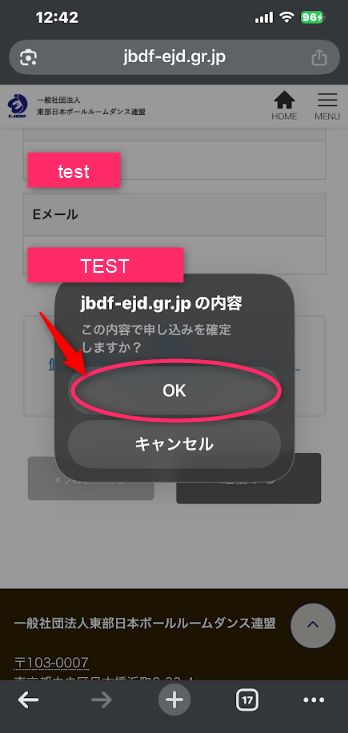 この内容で申し込みを確定しますか?でOKを押してください