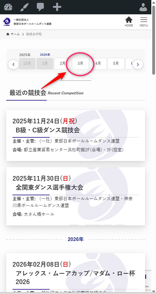上部の月別タブより申し込みたい競技会の月を押してください。